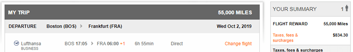 ANA: I could have tried round-trip by paying higher fuel surcharge but I wasn’t finding reasonable return flights for my dates. Avianca LifeMiles: This was interesting as it had award availability with Luftansa Business class from my home city of Charlotte and the out-of-pocket fuel and taxes were a mere US $27 per person plus 78,000 MR points (see below). Flying Luftansa for such a lost cost was a fabulous deal. Except the problem was with the Infant ticket. As LifeMiles does not allow to book an Infant ticket, I would have had to call Luftansa and have my daughter added to the ticket while paying 10% of the cost. The one-way cost of Luftansa Business class about 100 days before the trip date was USD $8,000. So I had to pay a whopping $800 for a lap Infant ticket!!