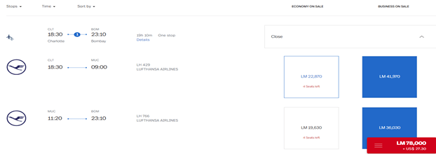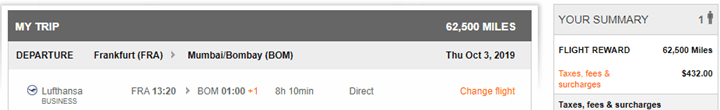 Money Saver Tip: Although Aeroplan passes on expensive fuel surcharges on Luftansa, I noticed that the fuel surcharges were high only between US-Europe Luftansa operated flights. I noticed lower surcharge cost on Europe-Asia/India route. So, when selecting US-India with stopover, the US-Europe leg can be on low cost award like United, SWISS, Turkish etc. and the Europe-India can be on Luftansa. Be mindful of Transit visa requirement if you are Non-US/ Non-EU citizen