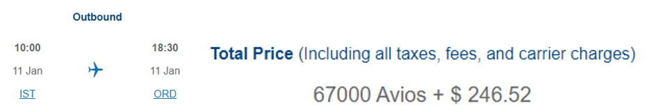 Money Saver Tip: If you start your flight outside of UK the taxes and fees will be much lower. E.g. Business Class on Istanbul-London-Chicago was just 67K Avios plus US $246 compared to 50K Avios plus US $544 on London – Chicago route.