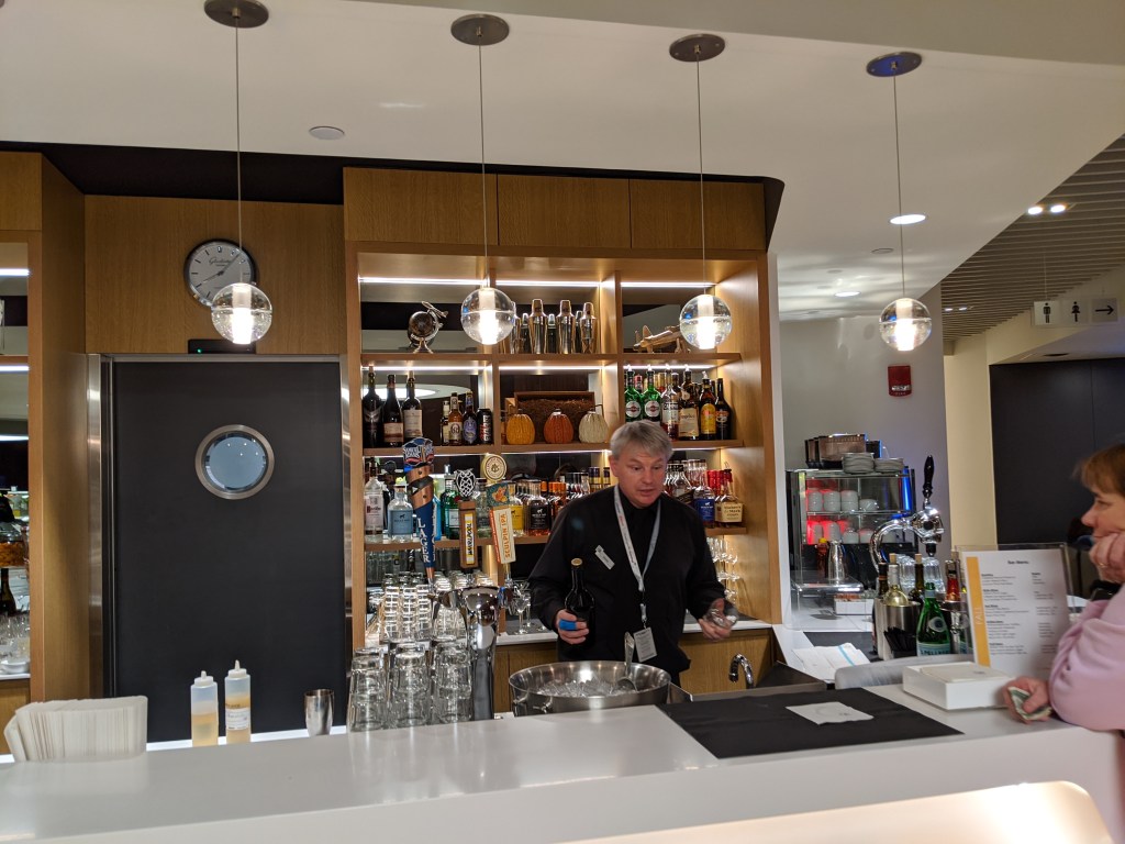 The lounge overlooks the Boston runway so you can watch landing and take off while sipping on your favorite beverage.