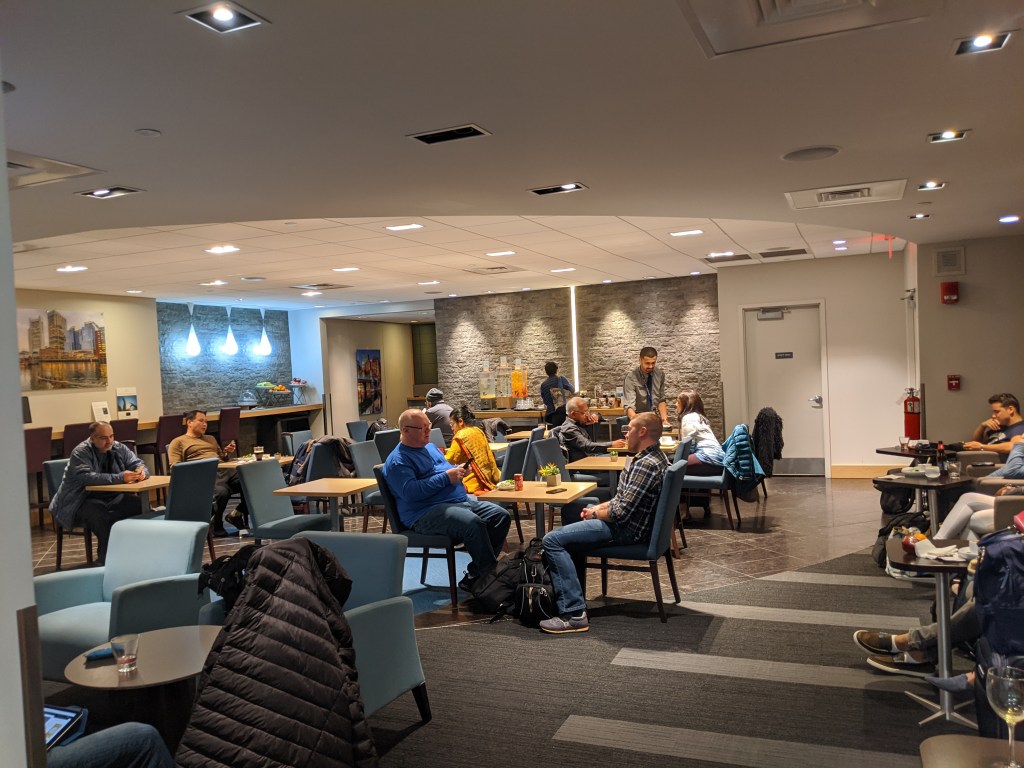 Overall “The Club” offers mediocre experience with limited food options and no alcoholic beverages. But if you are in search of some quite place to work over a long layover then this lounge should just get the job done for you at no cost out-of-pocket.