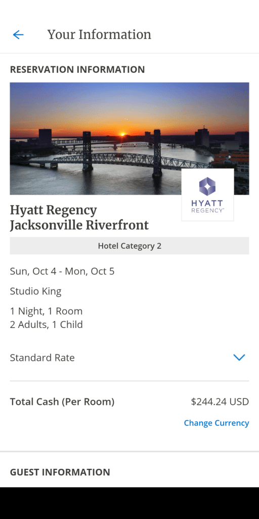 Currently, Hyatt is running a 25% back on using points promotion for World Of Hyatt members plus free parking that further incentives using points for stay. The pricing for the Studio King Suite at Hyatt Regency was as below:
