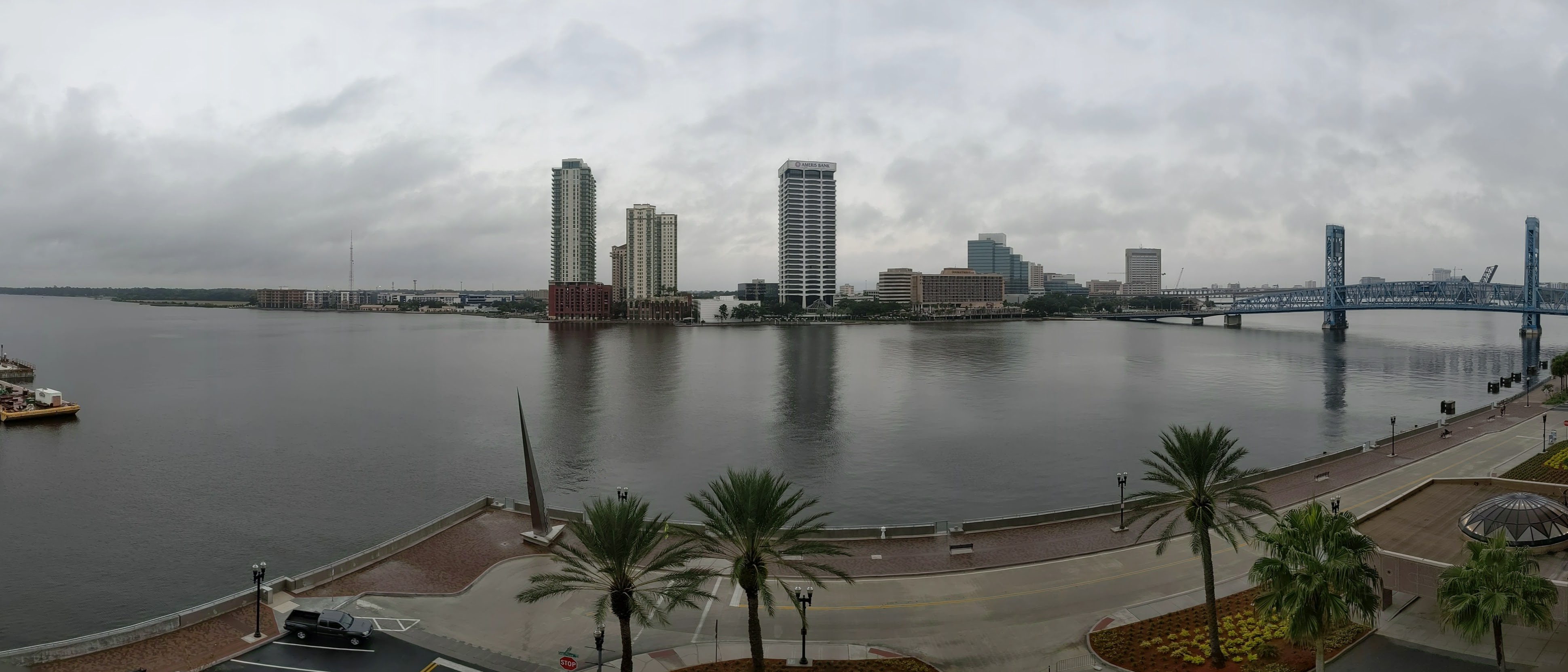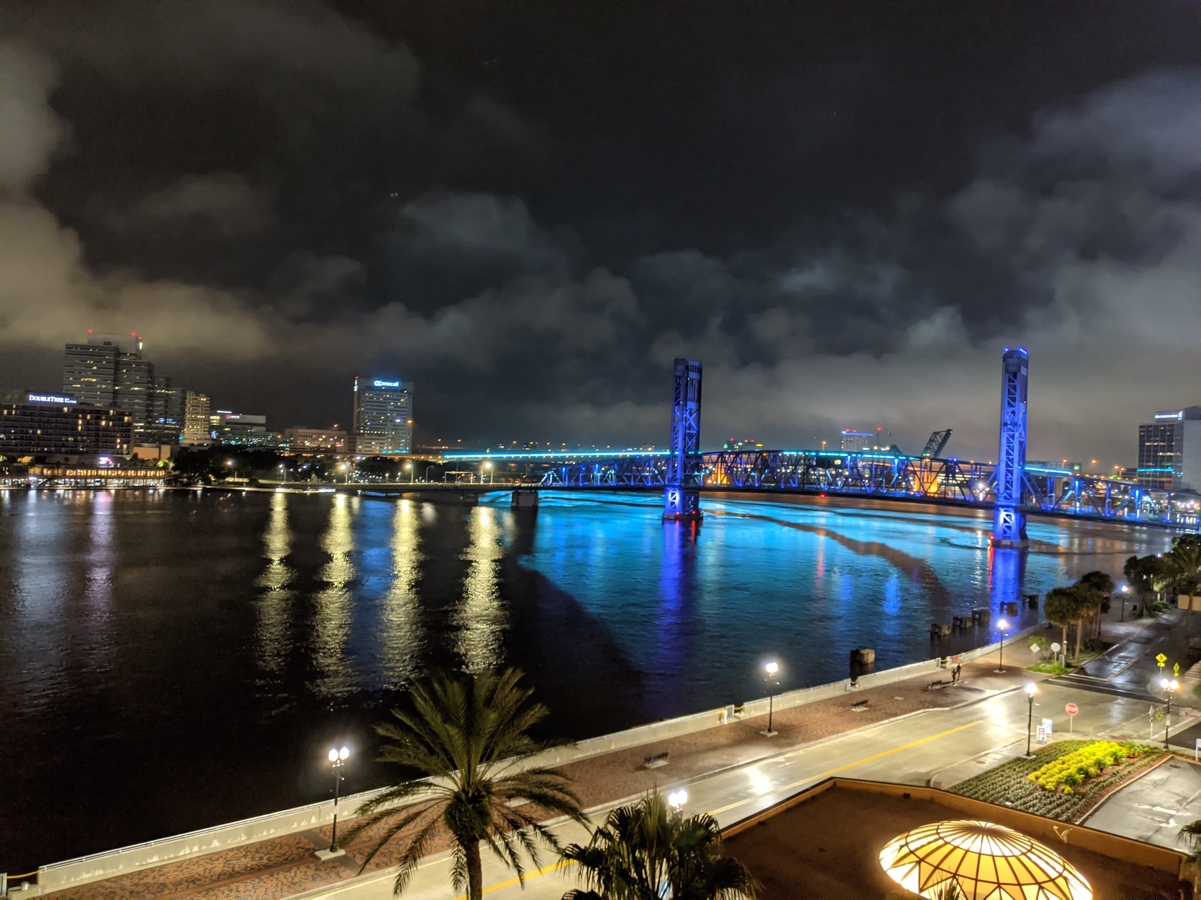 We recently travelled from our home in Charlotte, NC to Gulf Coast along Florida. A 11+ hour drive with an active Toddler in the back seat was an impossible drive, so we decided to take a break mid-way at Hyatt Regency Riverfront hotel Jacksonville, FL. The first time around we booked the standard room with City view but while on our way back much to our delight our standard room was upgraded to a Studio King Riverfront Suite which was a pretty good deal. Not only was the room spacious but overlooking the calm riverfront we were treated to the sight of a pod of Dolphins!! Ya my wife goes bonkers at the sight of Dolphins.